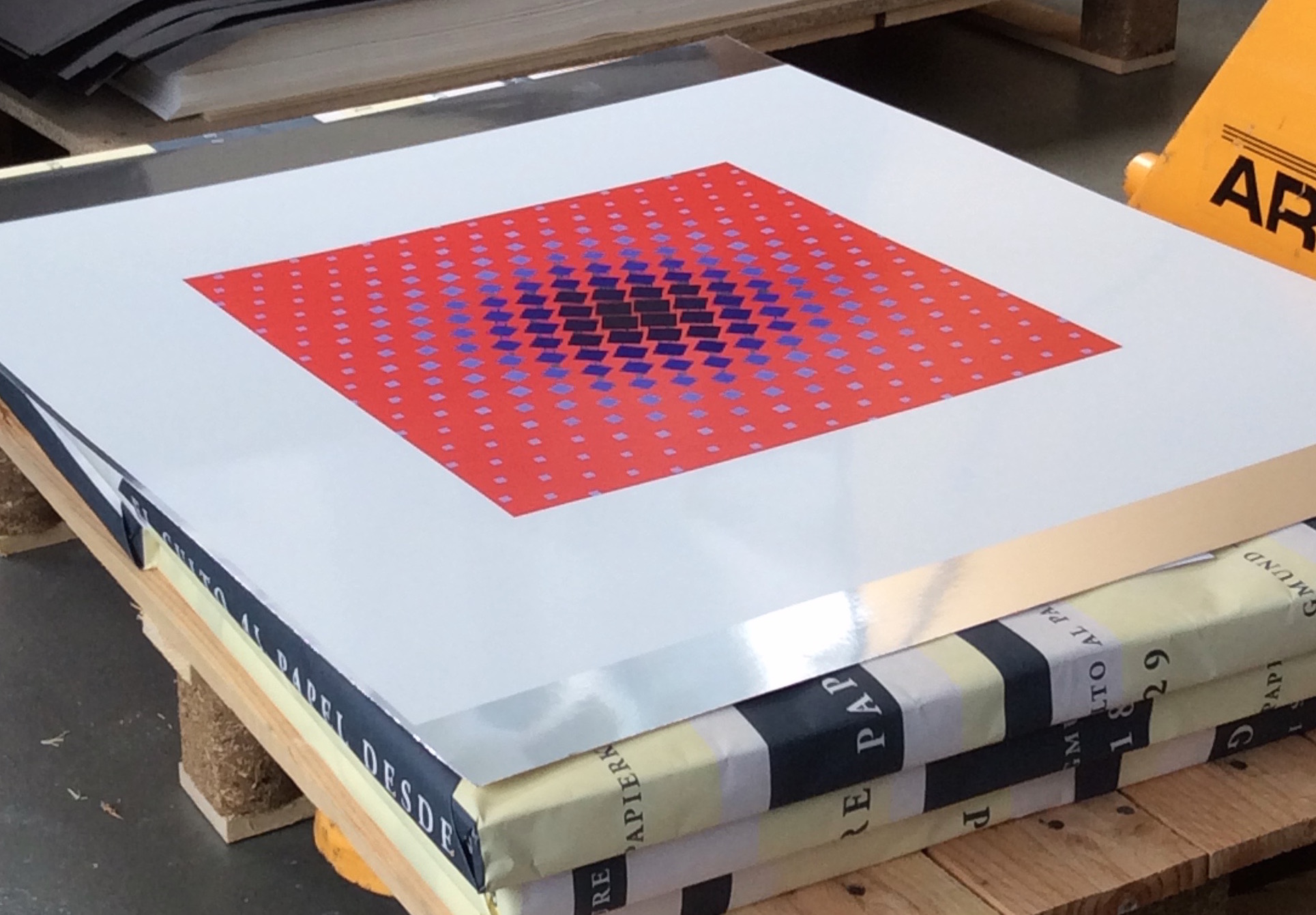 3D effects cannot be perceived by the photo objective, you have to see the original to discover all effects, red is metallic.. Screenprinting Artifact I 2016 1/15 prints Print 69 x 69,5 cm Mirriboard Paper 365 gm2 available – price on request