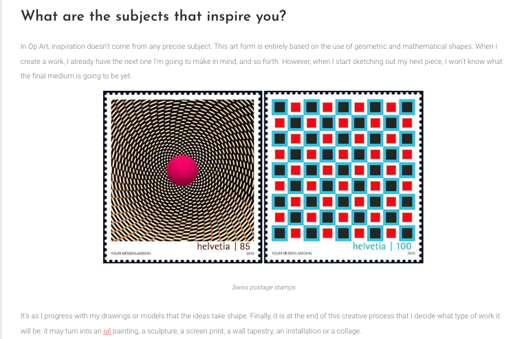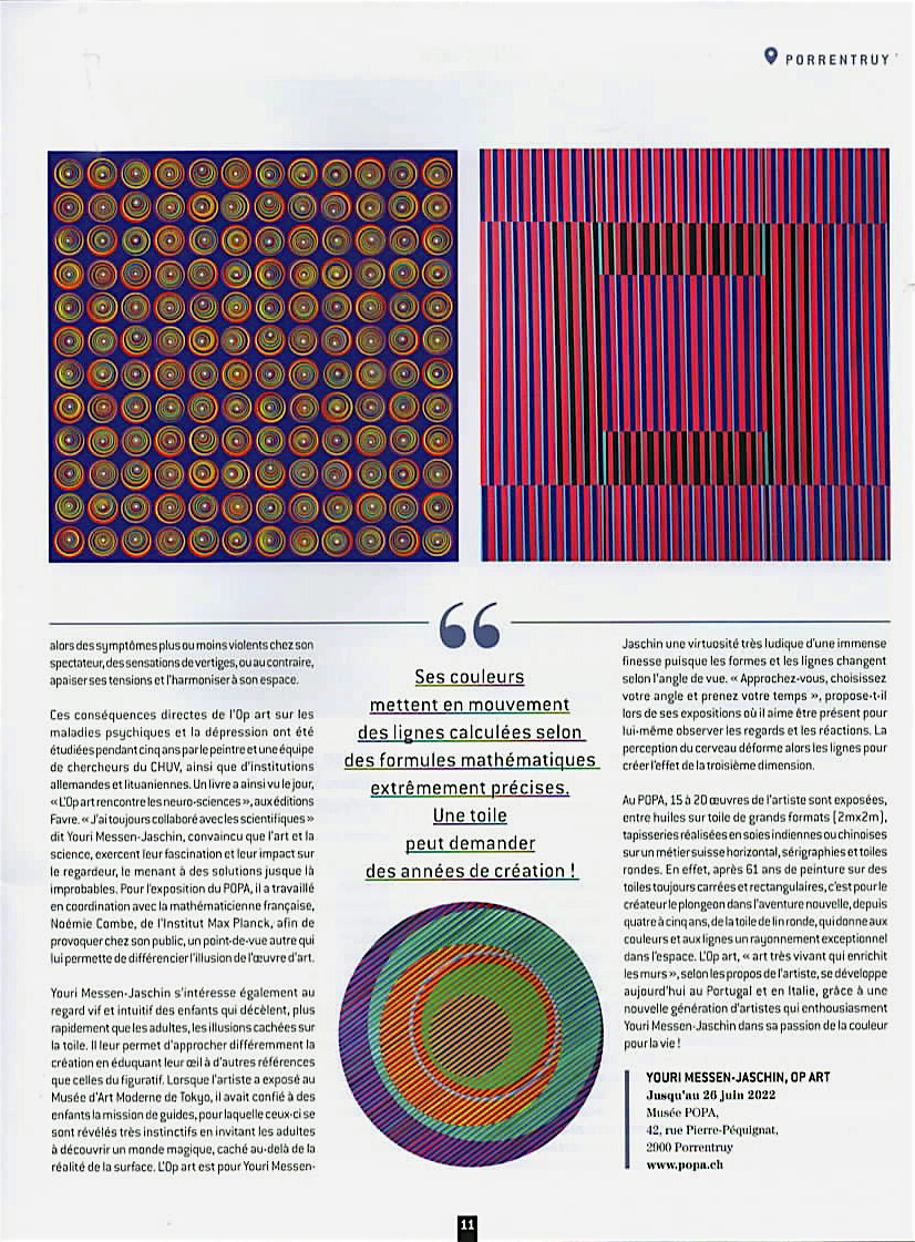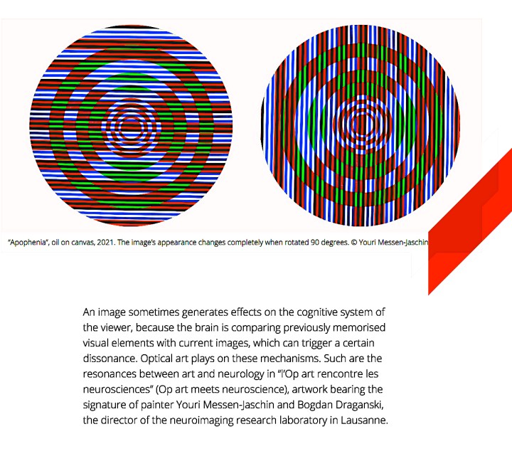 In 2022, Éditions Favre published a book about the interface between Op Art and neuroscience, ‘L’Op Art rencontre les neurosciences’; it describes this research, with supporting accounts from experts. The success of this bestselling art book seems to prove that the perception of illusions is a subject of interest to both scientists and artists.