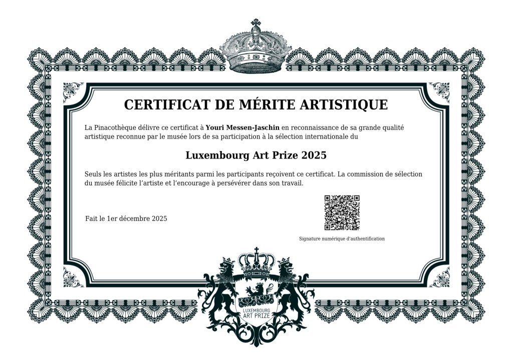 🇱🇺 December 1. 2024 – Pinacothèque de Luxembourg We are delighted to inform you that you have received the congratulations and encouragement of the La Pinacothèque museum in Luxembourg for the remarkable quality of your artistic portfolio and your research in Op art.