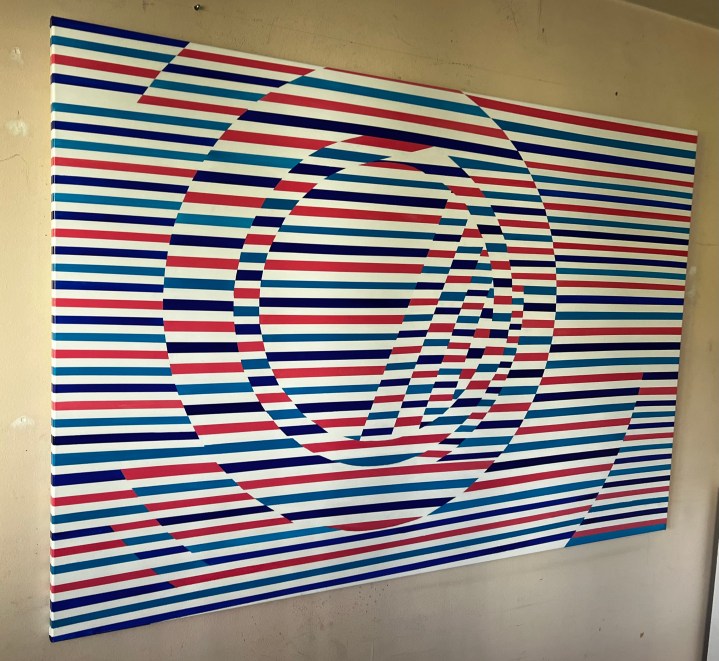 Through meticulous mastery of contrasts, optical vibrations, and the dynamic interplay of colors, the artwork appears to transform under the viewer’s gaze, creating a unique and almost magical experience. This art transcends mere visual perception, inviting the viewer on an immersive journey where geometry and color constantly reinvent themselves.