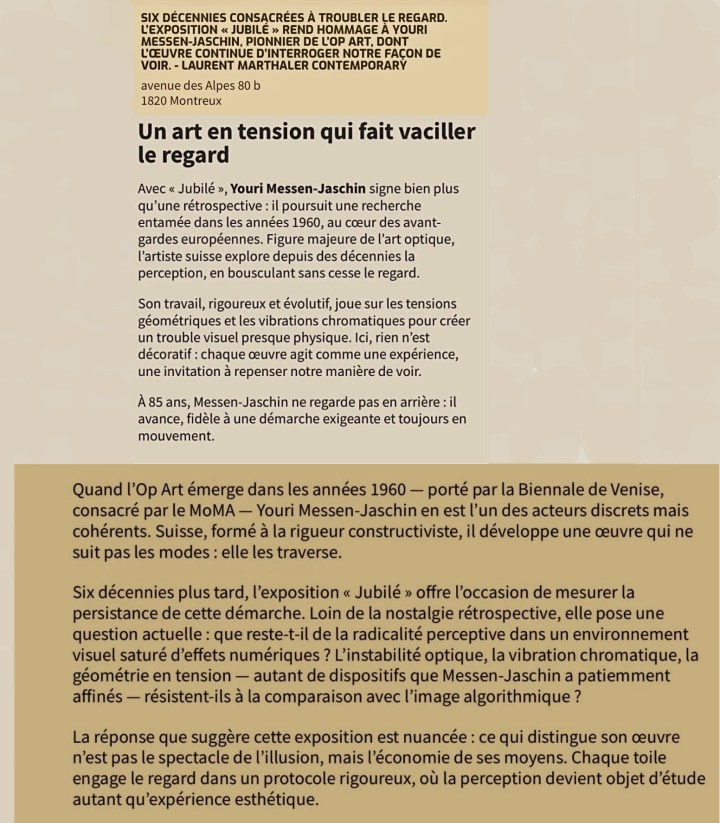 Celebrating the 85th birthday of Swiss Op Art pioneer Youri Messen-Jaschin, Jubilee is an exhibition dedicated to a major figure whose work has explored the dynamics of perception for over six decades.